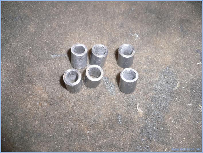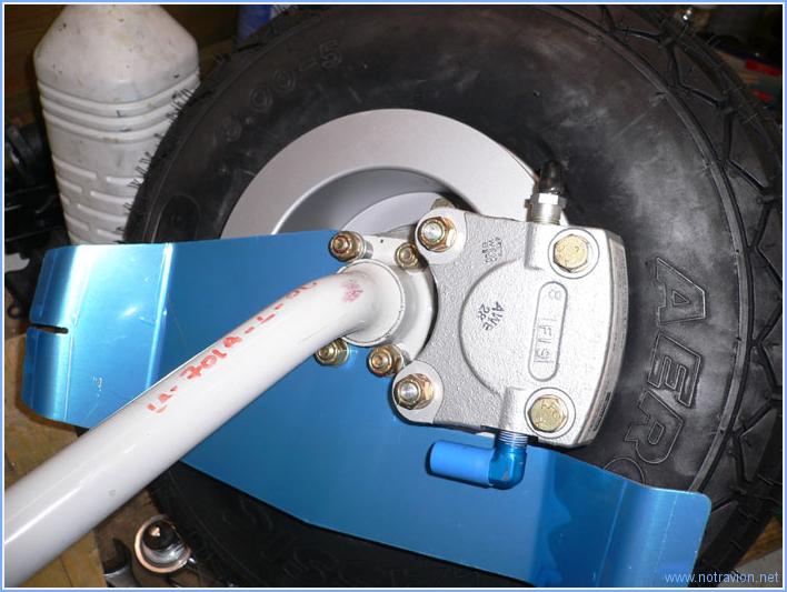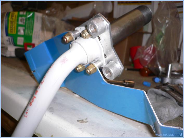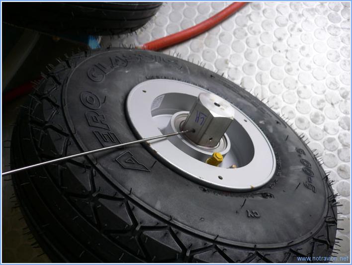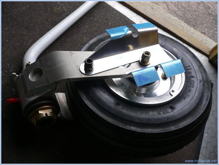 La journée est consacrée au montage des trois roues sur les jambes de trains. Pour le train principal il faut commencer par fabriquer six entretoises. Elles sont un peu plus longues que ne l'indique les plans, cela évitera d'ajouter une rondelle lors du montage. Puis, le support du bloc de frein et du carénage sont installés sur la jambe de train. Puis la roue, ainsi que le bloc de frein sont installé sur la jambe. La roue est maintenue sur l'axe par un gros écrou qui doit être freiné par une goupille fendue. Pour cela l'axe de la jambe doit être percée. Je marque les deux point de perçage en utilisant un foret long. Le perçage se fait ensuite avec la roue démontée. Voici le résultat. Ensuite je monte la roue avant. Pas de difficulté particulière, le montage n'est pas définitif car il reste à effectuer le serrage correct du gros écrou visible à gauche sur la photo. Ce serrage doit être assez précis et calibré et se fera après graissage correct de l'axe de rotation. Le graissage se fait l'embout rouge visible au dessus de l'écrou mais il faut disposer d'une pompe à graisse, encore un achat à prévoir. Temps de travail sur le sous-ensemble Aujourd'hui : 4h (Total : 6h) |