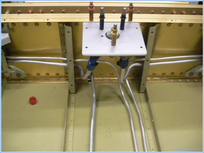 Today, was plumbing day. first I redo the lines from the fuel selector to the tanks. No problems as I had some training earlier on. I also have to redo the right side as it is supposed to connect directly to the tank as this tank does not have a flop tube. I install some protection to avoid bending the tubing while wrking around the cockpit. Not aerodynamic at all. Then I install the tubing for the brakes between the park brake valve and the exit to the landing gear legs. Makes for a lot of tubings below the fuel valve. This is a picture of the park brake valve connections. Working time on this subpart Today : 3h (Total : 188h) |