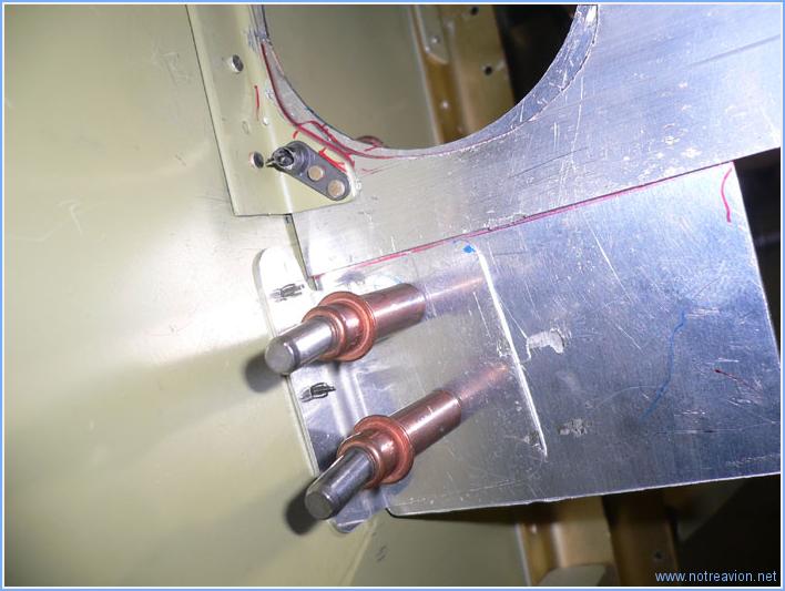 J'ai modifié les deux supports des aérateurs pour pouvoir y fixer les prises pour le casque radio. Pour renforcer un peu l'installation je fabrique tout d'abord un petit renfort en angle que sera riveté sur le fuselage et évitera au support des prises de bouger. Voici une vue depuis l'arrière du panneau. Voici le petit support percé au diamètre des prises. Et voici le coté droit, avec les prises provisoirement en place et le casque branché. Sur le coté gauche, j'ai un petit jour apparent entre le tableau de bord, la cornière et le support de l'aérateur. Je n'ai pas encore la solution, mais je sens qu'il va falloir refaire le support. Dernière nouvelle du jour, le moteur doit être livré demain matin. Temps de travail sur le sous-ensemble Aujourd'hui : 2h (Total : 195h) |