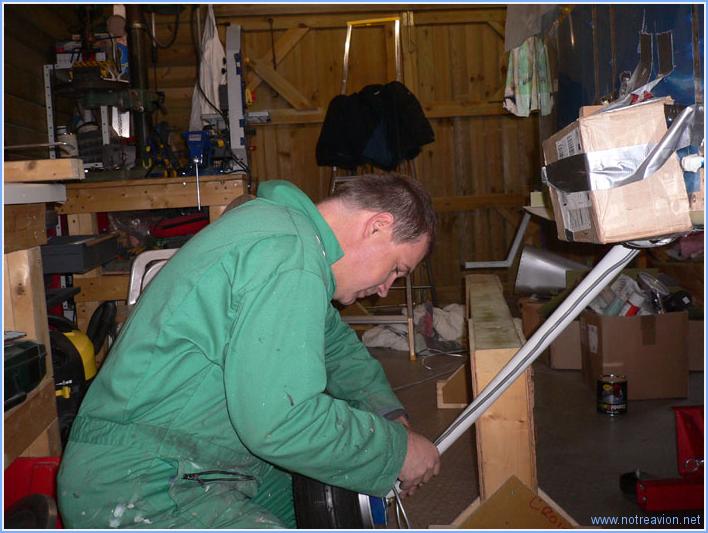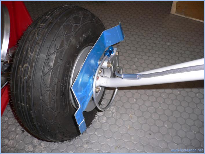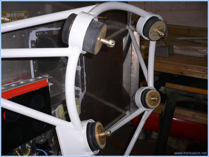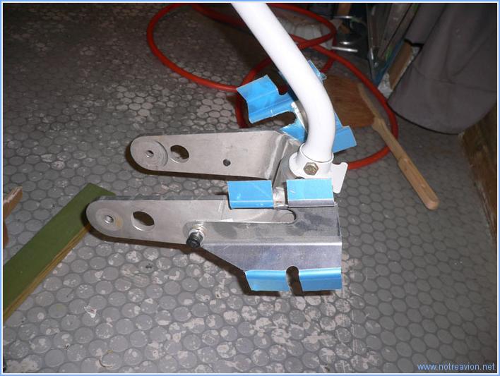 J'installe les tuyauteries de freins allant du raccord dans le fuselage jusqu'à l'étrier sur la roue. Pas trop de problème à ce niveau. Le bas du tuyau doit être enroulé autour de l'axe de la roue, cela permet d'obtenir le jeu indispensable lorsque l'étrier va se mouvoir lors du freinage. Le long de la jambe de train, le tuyau est protégé par des petits morceaux de PVC, l'ensemble sera fixé avec du ruban adhésif lors du montage final. Puis je commence à m'occuper de la roue avant dont le montage sur la jambe n'est pas complètement terminé. Après avoir démonté la roue, je vais également redémonter la fourche pour y apporter une petite modification. Je dois refaire quelques recherches sur le net, ce sera donc pour la prochaine fois. J'ai également mis en place très provisoirement les silent-blocs de montage du moteur. Bien que les pièces utilisées soient les mêmes partout, le sens de montage est différent entre le haut et le bas. Le silent-bloc n'est pas comprimé de la même manière sur le montage haut que sur le bas. En agrandissant la photo on peut voir la différence (position de la partie avec le filet jaune). Temps de travail sur le sous-ensemble Aujourd'hui : 2h (Total : 12h) |