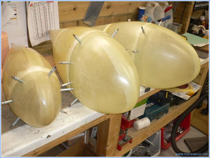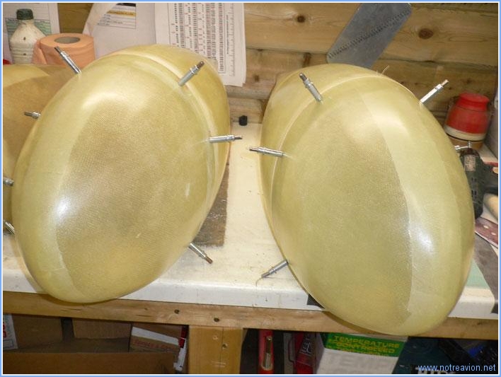 Les trois carénages de roue sont constitués de deux demi-coques chacun. J'ai assez de chance, tout s'ajuste assez bien, il a suffit d'un peu de ponçage seulement avant de faire les perçages. Pour les roues du train principal, les deux carénages sont identiques et ne deviennent différenciés pour chaque coté qu'après le perçages. Il n'y pas de perçage à l'endroit o๠la jambe de train va rentrer dans le carénage. Temps de travail sur le sous-ensemble Aujourd'hui : 1h (Total : 23h) |