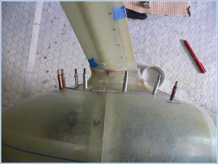 Je commence en fait par fignoler un peu le carénage de jonction inférieur sur le train gauche, après quelques ajustements le résultat semble correct. Puis j'installe le carénage de jonction supérieur, il faudra le fignoler un peu lorsque l'aile sera en place. Puis j'ai répété toutes les opérations pour le coté droit. Voici juste une photo montrant l'utilisation du petit bout de tube en plastique qui montre que le bord de fuite du carénage n'est pas encore correctement centré. Voici le carénage de jonction supérieur droit, il y a un espace de quelques mm entre le carénage et la tôle inférieure du fuselage, il faudra sans doute faire un peu de rebouchage lors de la mise en place définitive. Naturellement quand tout est terminé, commence le démontage. j'en ai profité pour fignoler quelques pièces et parfaire les découpes inférieures des carénages pour le passage des roues. Il me reste un coté à faire. Voici le carénage de la roue droite avec les demi carénages de jonction inférieurs en place et à coller. Toute la préparation finale de toutes les pièces pourra se faire par petits chantiers. Temps de travail sur le sous-ensemble Aujourd'hui : 5h (Total : 45h) |