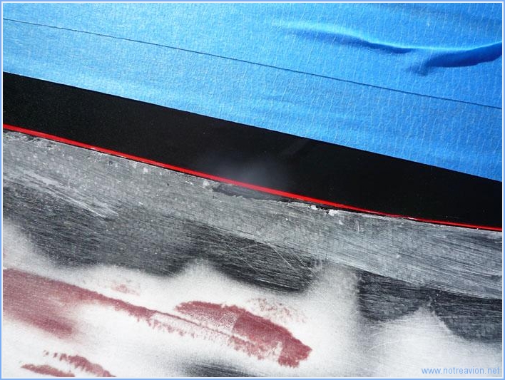 Après un peu de ponçage, j'ai enlevé les adhésifs et si le haut du congé est assez réussi il y a toutefois deux ou trois endroits nécessitant des reprises. J'ai donc refait le masquage et mastiqué les endroits en question.After some sanding, I removed the masking tape. The upper part of the fairing looks quite good except a few bad spots. So I put on new masking tape and did the filling. Temps de travail sur le sous-ensemble Aujourd'hui : 2h (Total : 121h) |