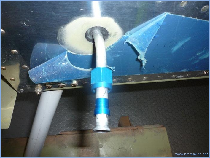 Voici notamment le montage de l'écrou et de l'olive sur la tuyauterie carburant du réservoir droit.