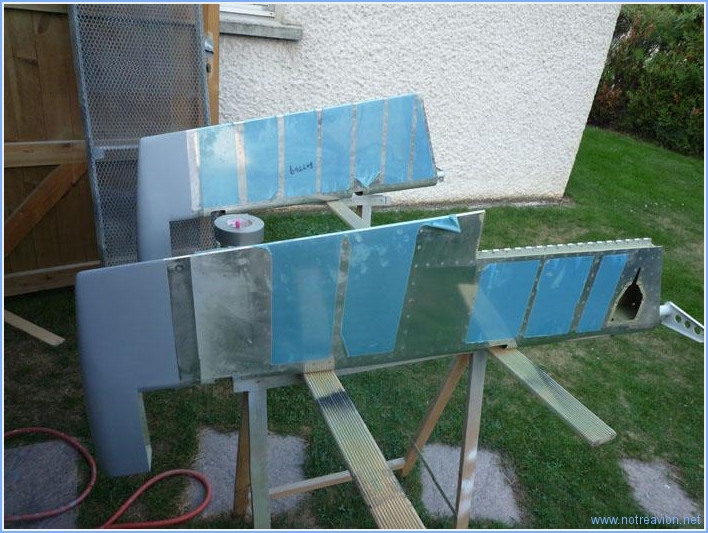 Je commence par masquer les parties qui ne doivent pas être peintes, avant de passer une couche d'apprêt. Il y a encore quelques imperfections, mais ce sera du travail à fignoler avant la perinture finale. Voici une partie des pièces. Et voici l'autre partie. Il reste maintenant à passer au primaire, les saumons d'aile et le cône d'hélice. Temps de travail sur le sous-ensemble Aujourd'hui : 3h (Total : 65h) |