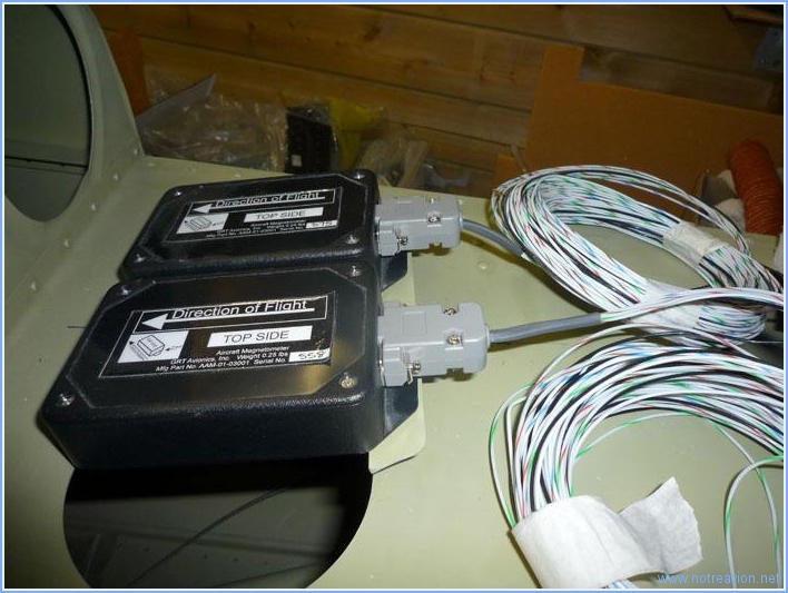 Le petit support ayant été peint, il faut réinstaller les deux magnétomètres. Les réglages précis seront faits un peu plus tard. J'ai commencé à fabriquer les harnais. Il faut en fait défaire le harnais fourni par GRT, installer les câbles dans la prises D-SUB, mettre un peu de gaine rétractable et monter le capot de la prise. Il me reste à marquer le câble et à le faire cheminer vers le fond du fuselage, puis vers le tableau de bord. Temps de travail sur le sous-ensemble Aujourd'hui : 2h (Total : 6h) |