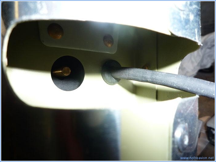 J'ai descendu la demi profondeur gauche pour installer la servo- commande du trim de profondeur. Un câble multibrins (5 câbles) doit passer depuis l'arrière du fuselage, à travers le plan fixe horizontal vers la profondeur gauche dans laquelle est installée la servo commande du trim. Pour connecter les câbles à la servo-commande, j'utilise des cosses de prises D-SUB qui seront ensuite maintenues par de la gaine thermorétractable. Cela permet un montage aisé sur ces petit câbles et un démontage possible ultérieurement. Ensuite le câble est noyé dans une gaine plus grande avant de passer par un passe-fil situé sur le longeron avant de la gouverne de profondeur. Normalement le câble aurait dà» passer à travers le grand perçage, mais il y a un risque d'interférence avec la vis de la servo-commande. Il faut ensuite couper le câble avant qu'il ne descende dans le fuselage, sinon il n'est pas possible de démonter la gouverne. Il faut donc installer un connecteur assez petit pour pouvoir le passer dans la gouverne. Je fais quelques essais en m'inspirant du site Aeroelectric. Je verrais plus tard si j'adopte cette solution. Temps de travail sur le sous-ensemble Aujourd'hui : 2h (Total : 4h) |
