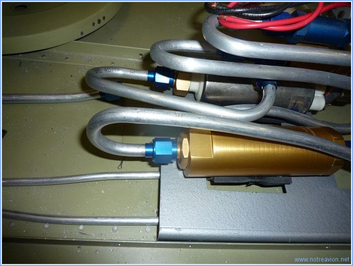 Avant d'essayer de résoudre le problème d'interférence d'un des tubes sur l'installation de la pompe carburant, j'ai peint et riveté le petit support du débimètre. J'ai ensuite essayé de fabriquer le bout de tube posant problème (celui au premier plan), mais après deux essais infructueux il a fallu se rendre à l'évidence qu'une autre solution pour le cheminement devait être envisagé. Après remise en place dans la cabine, il semble que passer au dessus du filtre plutôt que sous le support soit possible. je vais explorer cette option demain. Temps de travail sur le sous-ensemble Aujourd'hui : 2h (Total : 213h) |