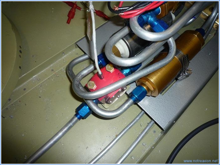 I fabricated the tubing I was having problems with yesterday. In fact there was a third routing possible. The tubing goes in front of the fuel flow sensor(red cube) and then under the pump bracket on the right side. I also installed the antenna doublers. Working time on this subpart Today : 2h (Total : 215h) |
