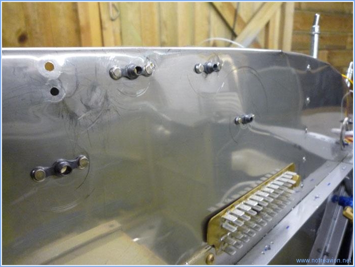 Après un peu de rangement et de nettoyage j'ai installé les écrous prisonniers pour la fixation du support des antennes GPS. J'ai également posé de écrous prisonniers sur la traverse supérieure du cadre de la cloison pare-feu. Cela permettra d'y fixer des brides pour le passage des différents câblages. Temps de travail sur le sous-ensemble Aujourd'hui : 2h (Total : 25h) |