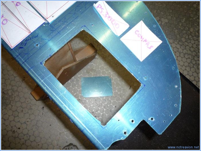 Il est temps de commencer à découper le tableau de bord. Je commence par la découpe et la mise en place de la boite à gant. La méthode choisie est un peu différente de celle préconisée par les plans, elle a été décrite dans la cinquième lettre bimestrielle de 2008 publiée régulièrement par Vans et disponible ici. Je commence par une découpe grossière à la scie sauteuse. Il faut quasiment deux heures pour limer correctement les bords et obtenir un positionnement correct de la porte. Après fixation des charnières sur la porte et la boite, l'ajustage est encore un peu amélioré. Et voici la porte en position ouverte. Il ne reste plus qu'à installer un petit verrou. Temps de travail sur le sous-ensemble Aujourd'hui : 4h (Total : 30h) |