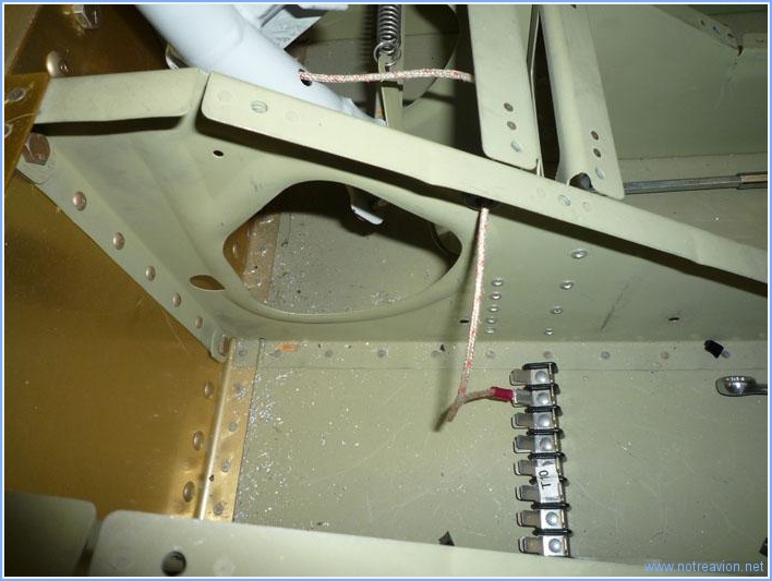 En attendant que les pièces peintes sèchent, j'ai débuté l'installation des dominos qui vont rassembler tous les câbles au pied des manches. Il y a d'abord une traversée de nervure avec un passe-fil puis le domino. Ce dernier était sensé être vissé sur la nervure, mais les fixations un peu trop fragiles ont cédées au serrage. Je vais le coller sur le plancher au joint à réservoir. Il y a naturellement deux cotés à installer. J'ai aussi fabriqué un petit support pour deux écrous prisonniers qui vont permettre de mettre en place la vanne de frein de parc sans avoir besoin d'aide. En effet, une fois toutes le peaux rivetées il ne sera plus possible d'accéder en solo des deux cotés de la cloison pare-feu. Temps de travail sur le sous-ensemble Aujourd'hui : 2h (Total : 221h) |