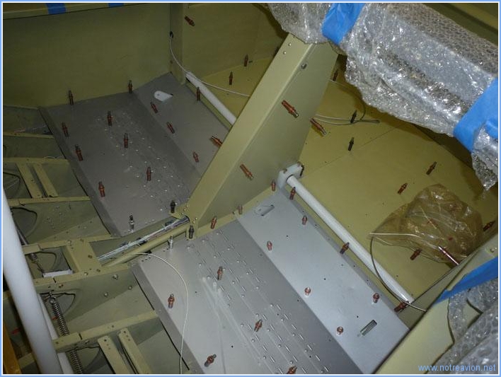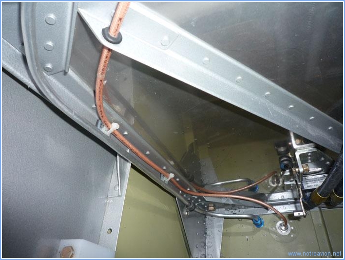 Avant de commencer l'installation des câbles des antennes, je termine la mise au propre des harnais sous la soute à bagage et réinstalle provisoirement les planchers, les cotés et le fond de la soute. Je fais de même sous les sièges. Puis j'installe les câbles, voici celui du transpondeur. Temps de travail sur le sous-ensemble Aujourd'hui : 3h (Total : 93h) |