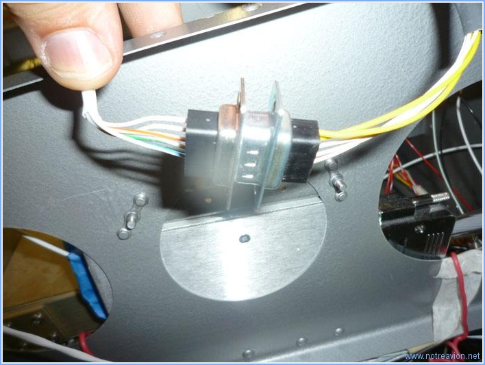 Aujourd'hui, mise en place du câblage des indicateurs de position des trims. Les deux indicateurs sont reliés à une prise D-Sub sur laquelle viendront se connecter les câbles en provenance des servo-commande. Le câble en provenance de la servo-commande du trim de profondeur est un peu trop court, j'insère une prise D-sub supplémentaire. Le câble arrive par la gauche (5 brins), il se prolonge par 3 brins à droite vers l'indicateur alors que les deux câbles jaunes sont les câbles de commande de la servo-commande.The wires from the elevator trim servo are slightly short, I isnert another Dsub. The servo wires come from the left, three of them go from the right side to the indicator and two are fed by the yellow wires to move the servo. Temps de travail sur le sous-ensemble Aujourd'hui : 3h (Total : 125h) |