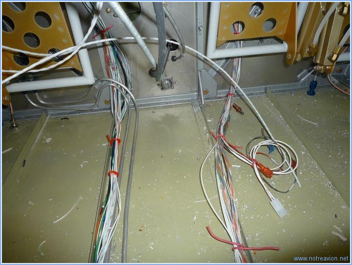 Je commence tout d'abord par arranger le cheminement des câbles sur le plancher, ensuite je pose quelques cosses manquantes sur divers circuits. En dehors de l'interphone qui sera traité plus tard, il faut maintenant faire les branchements sur les borniers à fusibles pour pouvoir alimenter tous les circuits. Je décide de procéder circuit par circuit tout en faisant les tests. Pour débuter doucement, j'installe le branchement de la batterie de secours des EFIS qu sont protégés par un fusible en ligne. Et après avoir installé l'EFIS et basculé l'interrupteur ad hoc, voici le résultat. Temps de travail sur le sous-ensemble Aujourd'hui : 3h (Total : 159h) |