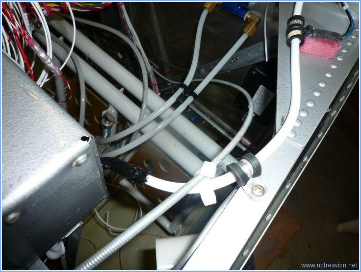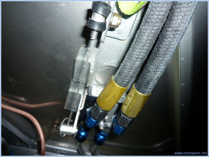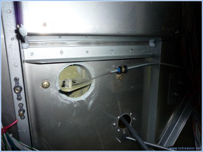 Pour terminer l'installation du tableau de bord, il faut installer les tirettes du frein de parc et de la vanne de chauffage cabine. Je commence par cette dernière. Elle chemine le long du flan droit, descend le long de la paroi pare-feu pour rejoindre la vanne. J'installe les brides de maintien sur des écrous prisonniers et perce un des renforts sur la cloison pare-feu pour permettre le passage. Voici le coté droit. Et voici l'arrivée à la vanne sur la cloison pare-feu. Pour le frein de parc, cela se passe du coté gauche. Et voici l'arrivée sur la vanne du frein de parc. Temps de travail sur le sous-ensemble Aujourd'hui : 3h (Total : 240h) |
