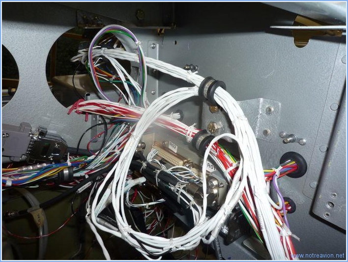 J'ai d'abord commencé par installer les capots sur tous les connecteurs qui n'en étaient pas encore équipés. Ceci a permis de fixer les harnais sur le tableau de bord secondaire. La photo montre les deux brides, et à gauche deux des capots installés. J'ai ensuite rationalisé un peu les branchements au niveau de l'intercom et de la boite de mélange audio. J'ai également modifié les sorties audio du GPS pour être prêt à toute éventualité en fonction du résultat sur l'état de mon GPS (d'ici quelques jours). J'ai eu un petit problème en voulant continuer à fixer les harnais. En effet, se je fixe la bride sur la petite équerre, les câbles passent très près du bord du trou de la nervure et risquent de frotter. je vais modifier le petit support pour éviter cela. Temps de travail sur le sous-ensemble Aujourd'hui : 4h (Total : 228h) |