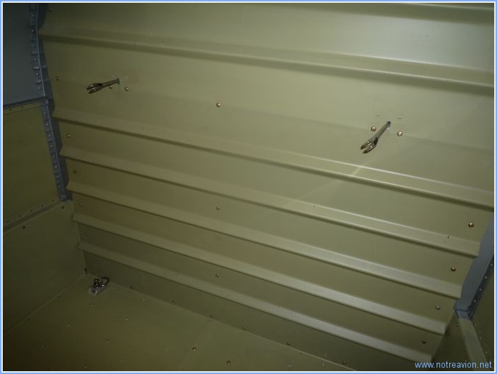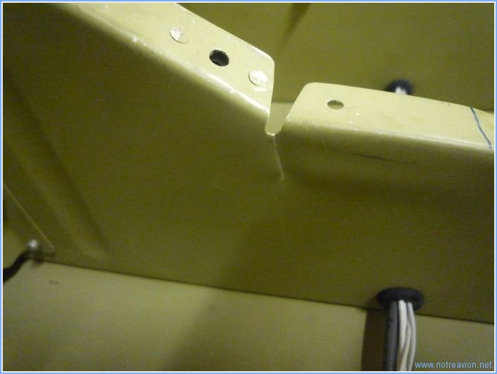 Avant d'attaquer les planchers sous les sièges, j'installe la cloison arrière de la soute à bagage. J'ai tout d'abord voulu installer tous les boulons et écrous sur le renvoi de la profondeur, mais il y aura des réglages à faire après le montage complet de l'avion donc cela ne sert à rien, d'autant que l'accès est "impossible". J'ai ensuite voulu commencer l'installation des planchers, mais j'ai découvert le petit problème que montre la phot ci-dessous. Une des nervures sous le siège gauche est criquée sur une vingtaine de millimètres. J'ai envoyé la photo à Vans pour savoir si la solution que j'envisage (fabrication d'un renfort à riveter après avoir stoppé la crique par perçage). J'ai installé uniquement le plancher à droite. Au niveau du tunnel central il y a quelques écrous prisonniers à installer dont l'accès aux rivets n'est pas possible avec les outils en ma possession, je les ai fixés avec des rivets pop prévu pour ce cas précis. A la réflexion, je pense qu'il aurait fallu ne pas installer tout le système de volets ceci aurait permis un meilleur accès pour le boulons hier et pour les écrous prisonniers aujourd'hui. Et le temps de faire tout cela, j'ai déjà la réponse de Vans qui approuve ma solution de réparation, il n'y a plus qu'à . Temps de travail sur le sous-ensemble Aujourd'hui : 3h (Total : 251h) |