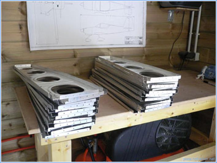 Inventaire et tri des nervures principales de l'aile, c'est Sabine qui s'est chargée de ce travail. La nomenclature est surprenante, des pièces nommées L(eft) vont dans l'aile droite!!! Il s'agira ensuite d'ébavurer et de redresser toutes ces pièces. Temps de travail sur le sous-ensemble Aujourd'hui : 1h (Total : 1h) |