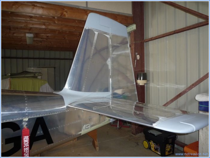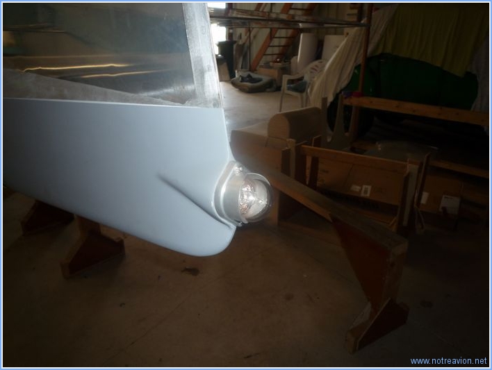 Depuis cet après-midi, l'avion a enfin un empennage. J'ai monté et réglé les demi-profondeurs, le plan fixe vertical et la direction. J'ai terminé le câblage, puis l'installation du feu de navigation et du strobe arrière. J'ai connecté les câbles de commande de la direction, on voit également le passage du câble d'alimentation du feu de navigation et du strobe. Voici la demi profondeur à droite. Et le coté gauche, elles sont alignées. Temps de travail sur le sous-ensemble Aujourd'hui : 5h (Total : 34h) |