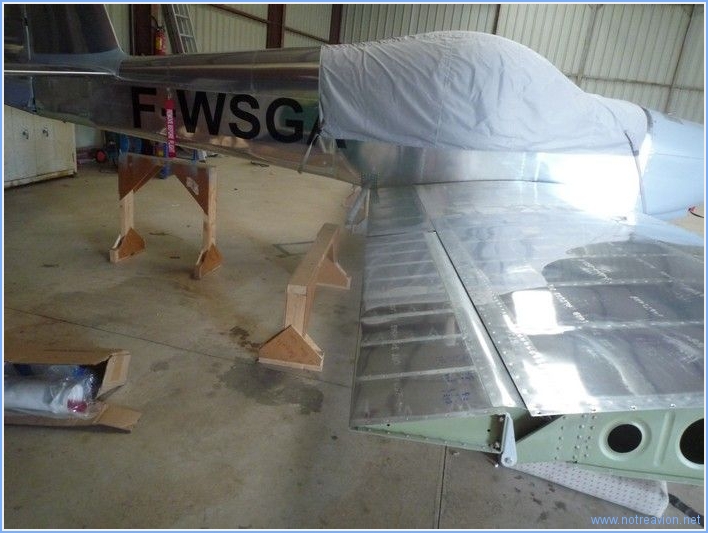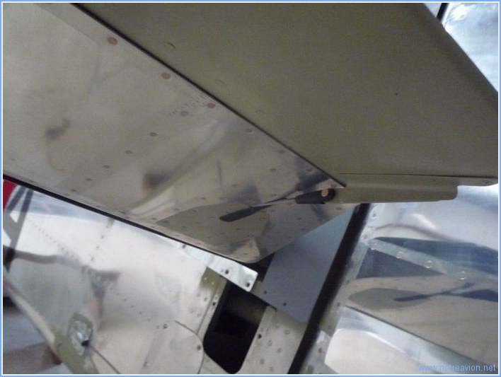 J'ai commencé par travailler à la maison sur le volet gauche. Il y a quelques jours, lors du montage au hangar il est malheureusement tombé sur le sol et le coin arrière droit à été légèrement abimé.Après avoire redressé la tôle, il restait une petite crique qui a été stoppée par perçage. J'ai ensuite posé un petit renfort. Naturellement ces opérations ont été approuvées par Vans. Une fois au hangar, j'ai installé le volet pour découvrir qu'une partie des rivets empêche le volet de remonter complètement. Les rivets butent sur le fuselage. Lors de mon prochain passage au hangar, j'inverserai le sens de l'embrèvement et les queues de rivets dépasseront légèrement sous le volet. J'ai également installé les ailerons, il reste à vérifier que les débattements sont corrects. Et enfin, j'ai installé la commande du trim de profondeur. Temps de travail sur le sous-ensemble Aujourd'hui : 6h (Total : 40h) |
