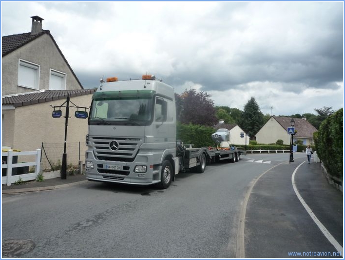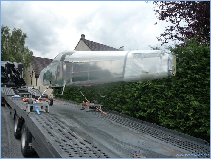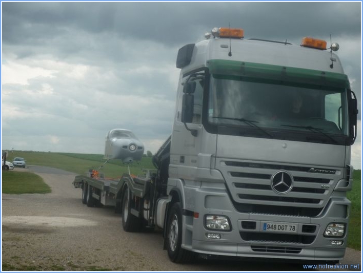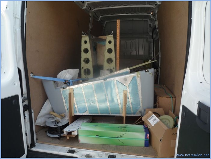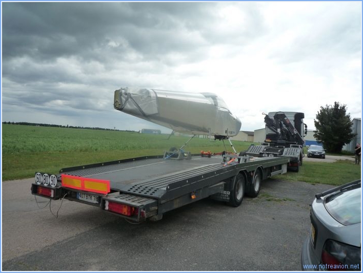Aujourd'hui, avec mes amis Raymond et Jean-Pierre, nous avons déménagé la première moitié de la construction vers le hangar. Le chargement a été effectué hier soir. Dans le camion il y a les ailes sur le support, les empennages horizontaux et verticaux, les volets, les ailerons, l'hélice, les bielles des commandes vols, les tréteaux, ainsi que quelques accessoires. Au hangar, le déchargement a été très rapide. Nous avons ensuite fait un petit tour dans le hangar du RSA o๠Rémy termine son RV-8. Il ne reste plus qu'à déménager le fuselage, ce qui pose quelques petits problèmes car l'écartement entre les deux roues est un peu plus large que les remorques et dépanneuses disponibles pour le moment. Je continue à chercher. |