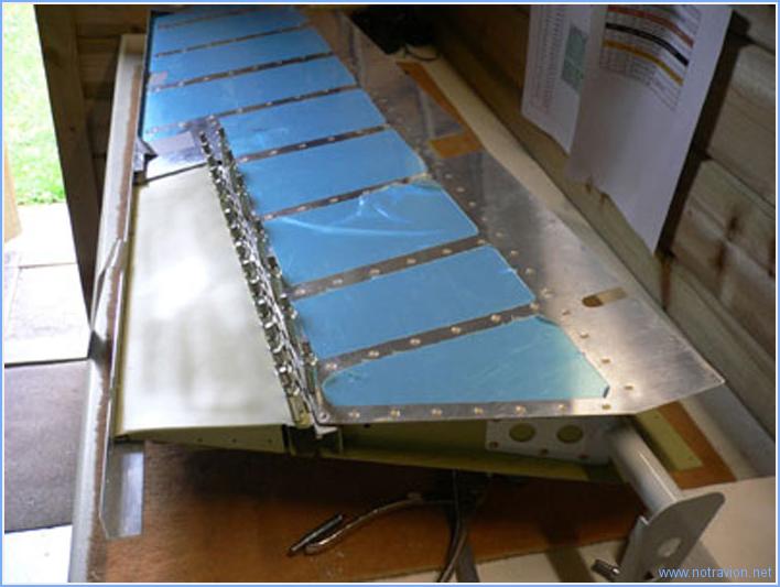 Rivetage de la profondeur gauche, il reste le longeron secondaire à fixer ainsi que le trim de profondeur. Temps de travail sur le sous-ensemble Aujourd'hui : 1h (Total : 41h) |