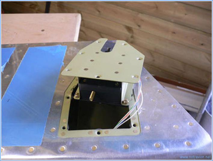 Ce matin, mise en place du trim de profondeur. Tout d'abord il faut vérifier et maintenir l'alignement, puis percer la charnière du coté de la gouverne de profondeur. Pour finir il suffit de riveter le tout. Ensuite les bords d'attaque sont roulés, la tôle est plus épaisse que celle de la direction et l'opération est plus délicate. Il faut un peu de persuasion manuelle pour que les tôles prennent un forme convenable. Pour finir, mise en place de la servocommande du trim de profondeur. Comme tous les constructeurs avant moi, j'ai été obligé de limer un peu les bords de la trappe pour mettre en place la servo. Temps de travail sur le sous-ensemble Aujourd'hui : 4h (Total : 45h) |