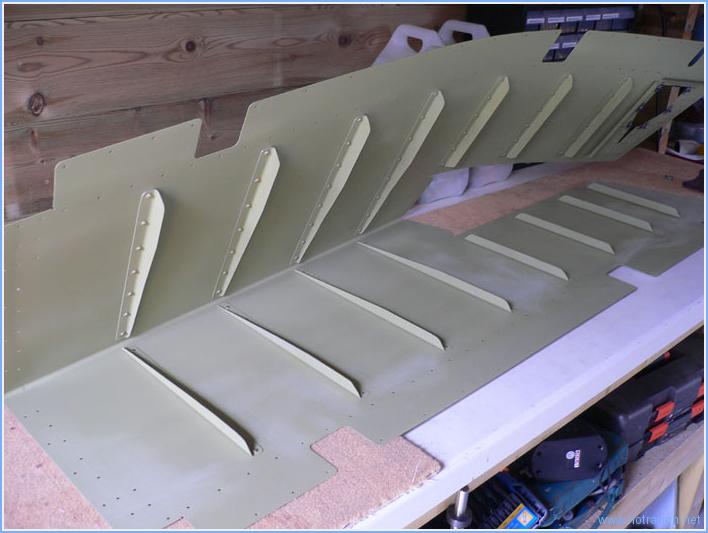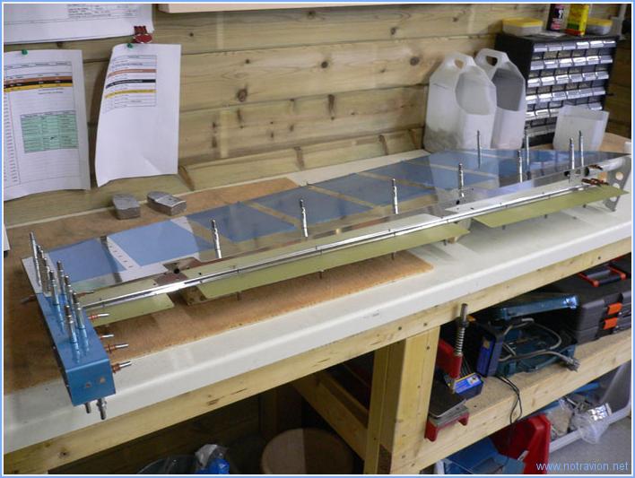 Les raidisseurs sont percés en place avec les peaux. Tous les perçages ont été ébavurés et embrevés. Il ne reste plus qu'à poncer avant d'appliquer le primaire. Fin de la journée en préparant la plaque de renfort pour l'installation du trim de profondeur. Juste pour rire nous avons compté le nombre de trous permettant de fixer tous les raidisseurs de la profondeur : 280 trous au total sur la peau. Soit en tout: 560 trous (peau + raidisseur) à percer, ébavurer de chaque coté et embréver. Temps de travail sur le sous-ensemble Aujourd'hui : 3h (Total : 7h) |