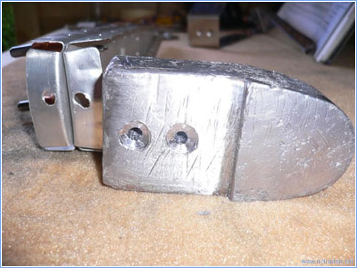 Assemblage de la partie gauche de la profondeur. Cette partie est un peu plus complexe car c'est sur cette ensemble qu'est fixé le trim de profondeur. La profondeur est munie de cornes débordantes qui permettent entre autre d'équilibrer statiquement la gouverne. Cet équilibrage se fait à l'aide de blocs de plomb. Ces derniers doivent être adaptés avant perçage, après plusieurs montages et démontages, j'ai réussi à en monter un à l'envers avant de le percer, naturellement les trous ne sont pas bien positionnés. On verra demain comment résoudre ce problème. En haut c'est tout bon, en bas c'est raté!!!! Temps de travail sur le sous-ensemble Aujourd'hui : 4h (Total : 20h) |
