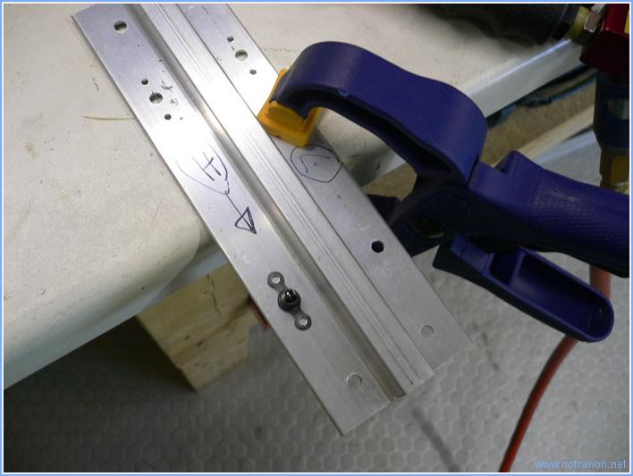 Le météo n'étant pas assez clémente pour passer les peaux au primaire, j'ai décidé de faire les fraisages restant sur le longeron principal. Ces fraisages vont recevoir les embrèvements des peaux de bords d'attaque pour la rangée supérieure et des peaux de l'aile pour la rangée inférieure. Une assez lourde tâche avec environ 450 fraisages par longeron. Temps de travail sur le sous-ensemble Aujourd'hui : 2h (Total : 18h) |