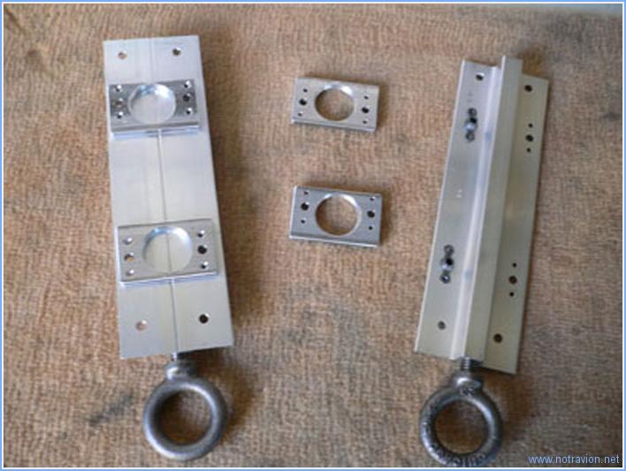 Suite du travail de fraisage sur les longerons. Il a fallu adapter le petit gabarit pour les écrous prisonniers fixés en diagonale. Puis il a fallu fabriquer les quatres entretoises qui viennent se fixer sous les supports des points d'ancrage au sol. Elles sont fabriquées à partir d'une barre d'aluminium dans laquelle on perce le trou de 1 pouce. Ensuite il s'est agi de percer la deuxième partie des supports des points d'ancrage. Sur la photo on voit cette pièce, les entretoises sont dessous. Pour le perçage il faut commencer par percer le trou situé en haut à droite pour permettre le positionnement sur le longeron. Ensuite, une fois que tout est bien positionné, les perçages se font par l'arrière. J'ai eu quelques soucis, le premier perçage en haut à droite est un peu trop à l'intérieur et l'ensemble a glissé un tout petit peu ce qui fait que le perçage en bas à gauche est un peu trop près du bord. Cela n'est sans doute pas dramatique car ce perçage ne supporte pas d'effort, il y aura à cet endroit un écrou prisonnier. Mais la pièce ne coute que 4,16$ et j'ai déjà une commande en cours, je vais donc la refaire la semaine prochaine. D'ici là il y a assez de travail pour ne pas être bloqué. Temps de travail sur le sous-ensemble Aujourd'hui : 4h (Total : 10h) |