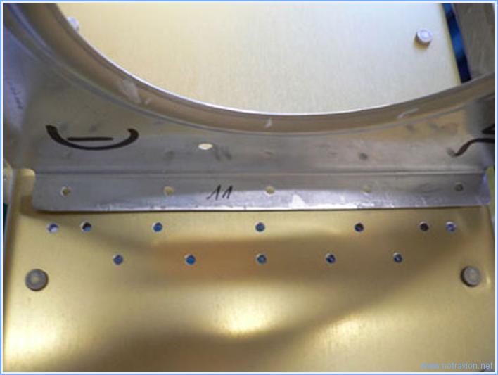 Yesterday, rereading the plans I noticed that I had made a gross mistake in drilling the leading edge rins to the main spar. Some main ribs and leading edge ribs need to be redrilled. But the leading edge rib is sitting on the other side of the spar than the main ribs, and I drilled all the same way. On the picture, the spar has six holes and the rib flange only four. it should be the other way round, I should have used the spar as a drill guide and not the rib!!!!!! I sent the picture to Van's, I think I will have six rivets on the flange instead of four. Working time on this subpart Today : 0h (Total : 5h) |