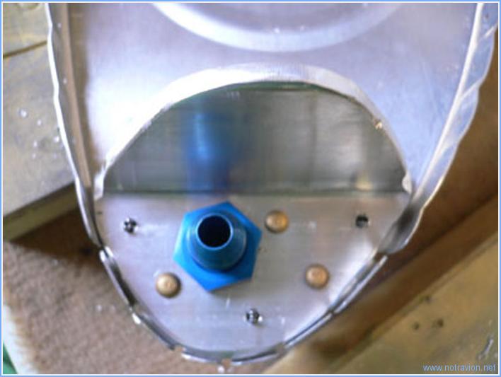 Some small work on the left tank, this one is equipped for aerobatics. So the first task is to build as small trap door for the second rib, this doors closes so as to trap the fuel in the first bay where the fule pick-up is. The fuel pickup fittings goes through the angle fabricated yesterday. The rivets have to be positionned carefully so as to be able to tighten the nut. Here the end result. I still have to install the fuel senders and the inspection hole cover. Working time on this subpart Today : 3h (Total : 8h) |