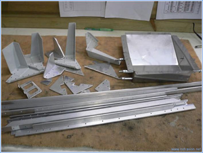Aujourd'hui, démontage de tous les éléments montés hier. Toutes les pièces et perçages sont ébavurés il faudra maintenant faire les embrèvements et les fraisages car tout est assemblé avec des rivets à tête fraisée pour que l'avant de la cloison soit lisse. Temps de travail sur le sous-ensemble Aujourd'hui : 2h (Total : 7h) |