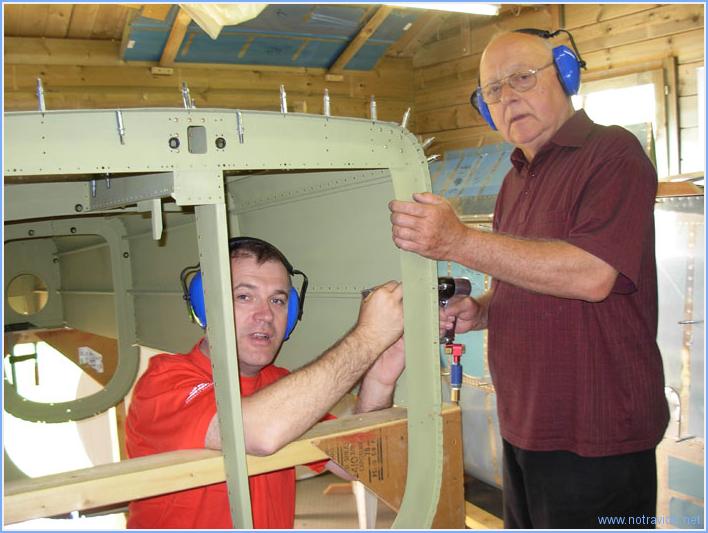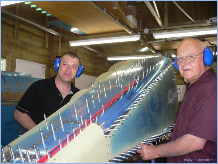 Fin du rivetage de la partie arrière du fuselage, dans le cone il y a quelques rivets un peu délicats à poser mais nous y sommes arrivés. La photo montre qu'il est avantageux d'avoir des tréteaux assez hauts pour le rivetage du fuselage arrière. Temps de travail sur le sous-ensemble Aujourd'hui : 3h (Total : 49h) |