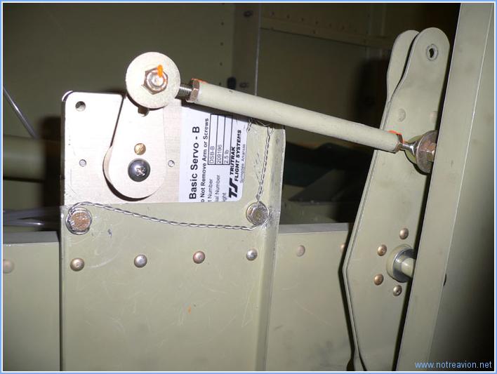 J'ai commencé par mettre en place le boitier de commandes des strobes. Puis j'ai installé la servo commande de profondeur du pilote automatique. Il a fallu jouer un peu avec diverses rondelles pour que l'ensemble soit installé correctement sans interférence avec la structure. La pose du fil à freiner n'a pas été sans quelques soucis, je verrais la prochaine fois s'il ne vaut pas mieux le refaire. Temps de travail sur le sous-ensemble Aujourd'hui : 1h (Total : 75h) |