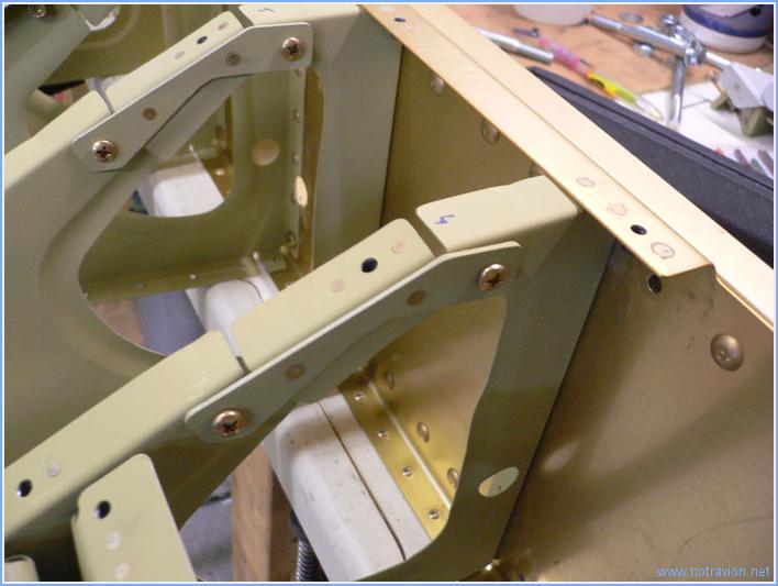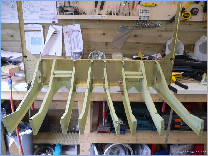 Pas de réponse de Vans au sujet de mon problème d'hier, cause jour férié aus USA (Journée des anciens combattants de tous les conflits). Je constinue néanmoins le montage de la partie centrale du fuselage. Tout d'abord en installant tous les écrous prisonniers sur les nervures des sièges, puis en rivetant les petites portes sur les quatre nervures intérieures qui permettront la mise en place des commandes de vol. Puis je fixe les supports des ceintures de sécurité sur le cadre des sièges. Enfin je commence l'assemblage des nervures de la soute à bagages dont le rivetage sur le cadre n'est pas très aisé à cause d'un accès parfois délicat. En attendant la réponse de Vans, je n'ai pas encore riveté sur le cadre des sièges les deux nervures incriminées. Temps de travail sur le sous-ensemble Aujourd'hui : 3h (Total : 32h) |
