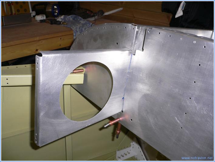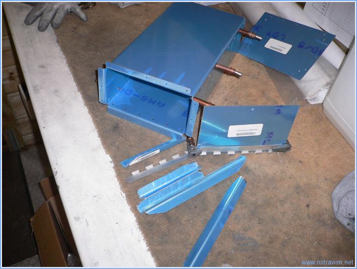 J'ai commencé par réinstaller les supports du tableau de bord. En effet, si le détail du tableau n'est pas encore décidé, je sais qu'il y aura en place gauche un écran central. Hors, la nervure de support est exactement au centre du champ de vision. Elle doit être modifiée. Cette modification est documentée sur plusieurs site, et Van's n'y voit pas d'inconvénient. Voici la nervure en cause, je vais la couper à ras du tableau secondaire. Voilà le résultat de la coupe. Ensuite la partie découpée est équipée de deux morceaux de cornière pour pouvoir la fixer au panneau secondaire. la position sera déterminée plus tard après installation du tableau. J'ai également riveté les supports des aérateurs. Et pour finir, j'ai installé les supports des marchepieds sous les plancher de la soute à bagages. Temps de travail sur le sous-ensemble Aujourd'hui : 2h (Total : 113h) |