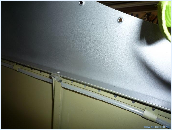 Je délaisse un peu le câblage, Guillaume ayant accepté de passer un peu de temps dans l'atelier pour jouer le rôle de riveteur. Nous installons ensemble la tôle supérieure derrière le hublot. Après une heure et demi de travail nous avons posé tous les rivets qu'il n'est pas possible d'installer tout seul. Je termine tout seul ensuite les rivets restants. Il faut également ne pas oublier les petits clips qui maintiennent la tuyauterie des prises de pression statique. Quelques rivets au niveau de l'arceau de la verrière sont impossibles à poser au pistolet et au tas, j'ai mis des rivets pop, solution communément adoptée par le plupart des constructeurs. Temps de travail sur le sous-ensemble Aujourd'hui : 4h (Total : 36h) |
