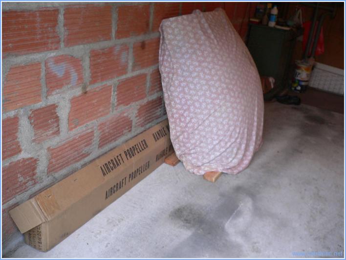 Je viens un mail de Mattituck m'informant que mon moteur est prêt à  être livré. Après le transfert des fonds, cela devrait prendre une dizaine de jours. En attendant, je range le garage de mon voisin pour pouvoir y stocker l'engin. Je démonte la caisse ayant servi à  la livraison du fuselage et ne laisse que l'hélice et la verrière.