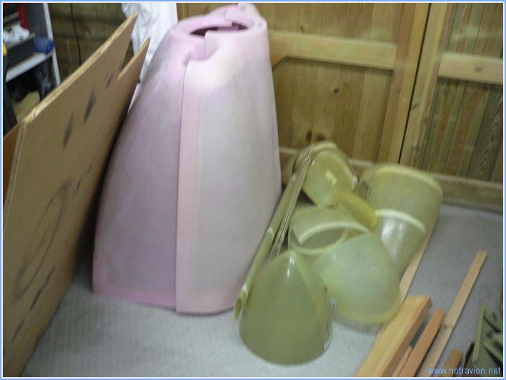 Dans l'atelier, il va falloir trouver une place pour les capots, les carénages de train et le cone de l'hélice.