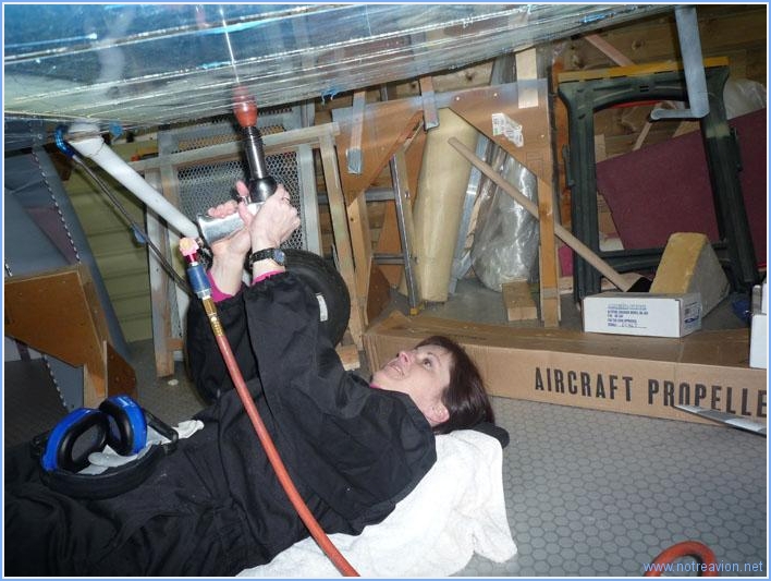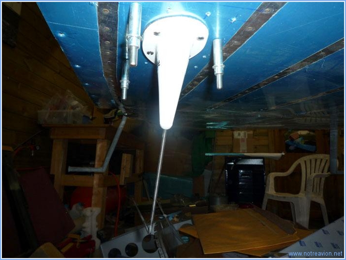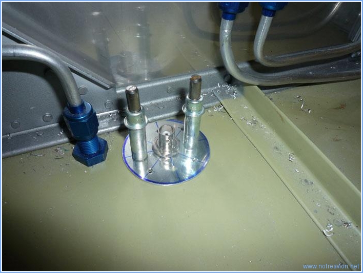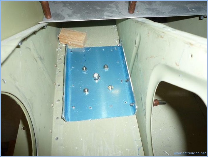 Les antennes transpondeur et VHF (radio) sont à fixer sur le fuselage. Après quelques recherches, j'ai décidé d'installer l'antenne transpondeur au pide de la cloison-pare feu derrière les palonniers du coté gauche à coté de la mise à l'air libre. Voici l'intérieur du montage avec une petite plaque de renfort circulaire. Voici l'antenne depuis l'extérieur. L'antenne VHF est fixée sous le siège coté droit dans la baie extérieure. Voici la vue sous le fuselage. Voici la vue de l'intérieur avec le renfort qui sera riveté sur la nervure et sur le fond du fuselage. Il reste encore à ébavurer les renforts, les fraiser et embréver le fuselage. Temps de travail sur le sous-ensemble Aujourd'hui : 3h (Total : 19h) |