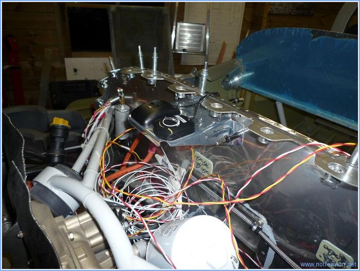 J'ai fabriqué le support des antennes GPS, il il s'agit plus de chaudronnerie que de câblage. Les deux antennes (une pour un des EFIS et l'autre pour le GPS Garmin) vont être installées en avant de la cloison pare-feu sur un petit support. Après deux essais, le résultat est correct et me semble assez solide. Voici le support installé provisoirement. Il reste à installer les écrous prisonniers pour les boulons de fixation. Temps de travail sur le sous-ensemble Aujourd'hui : 3h (Total : 23h) |