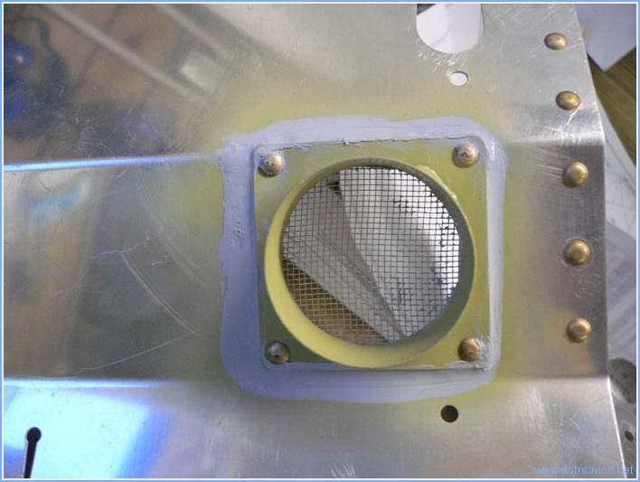Voici la prise d'air pour le chauffage sur la cloison arrière droite (il y aura un deuxième prise, sans doute sur la cloison avant gauche).