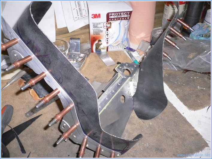 Puis après passage au primaire de surfaces de contact commence le travail de rivetage. Quelques rivets récalcitrants ont quelque peu rallongé cette tâche.