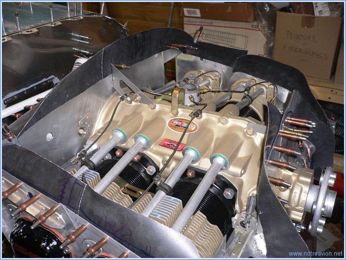 Je commence par poncer toutes les pièces en vue de passer une couche de primaire. Une fois la tâche terminée, je pense qu'il est plus prudent de terminer l'ajustage complet des cloisons avant de faire la peinture. Je décide donc de m'occuper des joints supérieurs des cloisons. Ces joints sont en fait des bandes souples qui vont faire étanchéité avec le capot supérieur et forcer l'air de refroidissement à  circuler de haut en bas à  travers le moteur. Les formes de ces bandes étant assez complexes, je commence par fabriquer des gabarits en cartons. Les voici en place sur le moteur.
