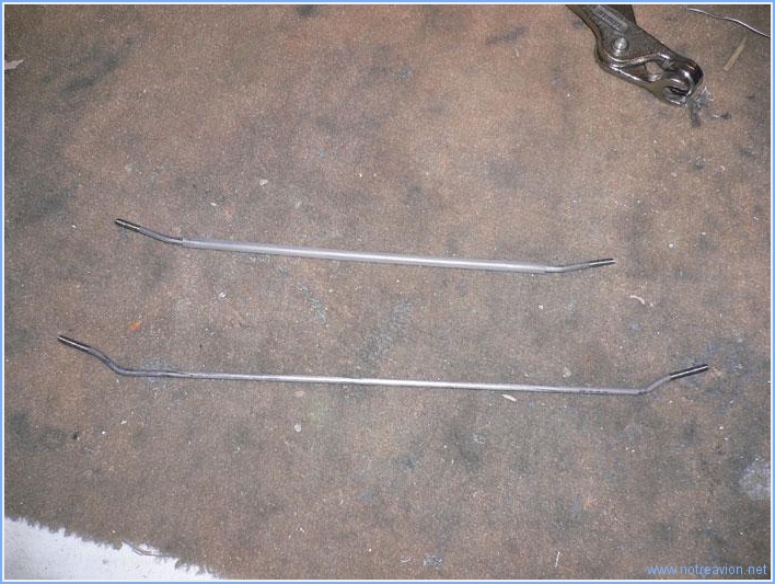 En attendant que les capots sèchent, je m'attaque à l'équipement du moteur. Cela commence par un quasi non évènement, la mise en place de l'alternateur. Toutes les pièces de la boite se mettent en place sans aucun problème, il ne reste plus qu'à freiner les boulons de fixations et mettre en place correctement la courroie. Puis j'installe toutes les pièces du cloisonnement. Il y aura des coupes et des ajustements à faire pour pouvoir mettre en place les capots. Voici le support des cloisons arrière, avec le passage d'une des lignes d'injection. Voici toutes les cloisons en place. Pour terminer, je décide de faire ce que je pensais être une toute petite tâche: la fabrication des tiges de liaisons inférieures pour les cloisons. Il s'agit de découper, plier et fileter des tiges en acier. Tout cela n'étant pas aussi évident que prévu. La photo montre deux des quatre tiges. Pour terminer, j'ai cassé celle du bas en essayant de parfaire un des angles de pliage, la pièce avait été fragilisée par le filetage. Une nouvelle commande en vue chez Vans. Temps de travail sur le sous-ensemble Aujourd'hui : 3h (Total : 33h) |