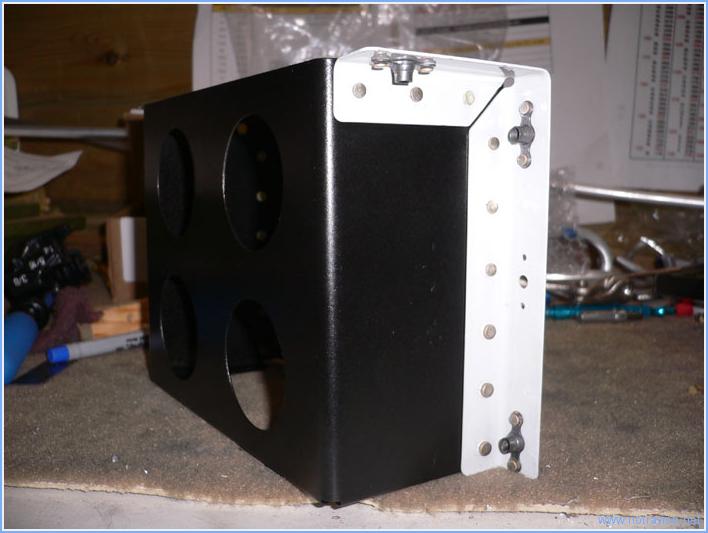 Ce matin, j'ai installé le bati moteur sur le fuselage. Cette opération qui me semblait délicate s'est bien passée. Le bâti est maintenu sur la cloison pare-feu par six boulons de 3/8 de pouce (9,5mm) de diamètre. Les emplacements des boulons des quatre coins sont pré-percés dans la cloison pare-feu, mais pas dans les renforts en acier situés à l'intérieur du fuselage. Et il n'est pas sà»r que ces emplacements soient tout à faits en bonne position, il faut donc faire tous les perçages avec le bâti installé sur la cloison. Je commence par marquer au feutre bleu le diamètre approximatif des supports du bâti pour avoir une référence de centrage. Puis le bati est maintenu en place par deux serre-joints à travers l'ouverture de la cloison pare-feu. Voici une photo du montage en haut à droite, le perçage sur la cloison est visible et centré, les pièces derrière la cloison ne sont pas encore percées. Les autres perçages sont un peu moins centrés mais de peu, moins de 1,5mm d'écart. Il n'est pas possible de percer directement au diamètre final, je passe donc par plusieurs étapes. Tout d'abord un perçage au diamètre 11/64 de pouce (4,4mm) en utilisant un insert en plastique trouvé dans une quincaillerie aux US. Puis je perce au diamètre 1/4 (6,3mm) en utilisant l'insert démonté hier au niveau du manche droit (J'avais acheté des inserts en acier aux US mais ils sont un peut trop épais, bien que donné pour 3/8). Ensuite j'installe des boulons de 1/4 (6,3mm) avant de tout percer définitivement. Pour que le boulon reste centré, j'utilise un morceau de tube d'aluminium de 3/8 (j'en ai plein, c'est de qui sert à fabriquer le circuit carburant). Les quatre coins étant fixés, je perce les deux fixations centrales à la dimension définitive en passant par toutes les étapes sauf le boulon de 1/4. Ensuite je perce successivement les quatre boulons des coins à 3/8. Voici une vue de l'intérieur du fuselage avec les deux gros boulons inférieurs.. Il est à noter que les pièces à percer sont assez épaisses et pour partie en acier. Il faut lubrifier les forets régulièrement et évacuer les copeaux tout aussi régulièrement. Temps de travail sur le sous-ensemble Aujourd'hui : 2h (Total : 11h) |