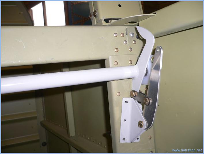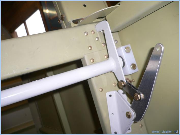 Je commence par la fabrication des blocs de support des charnières avant du cadre de la verrière. Cette opération est bien décrite dans la liasse de plan et su beaucoup de site. L'ordre des opérations parait un peu bizarre, mais cela fonctionne. Voici le bloc de gauche en place avec ses deux boulons et la fiche de maintien. Voici le coté droit, après rajout de la petite nervure flottante au premier plan. Pour le perçage de cette nervure il faut remettre en place la peau supérieure avant car il n'y a pas d'autre moyen de la maintenir en place. Le perçage se fait en soulevant les extrémités de la peau et en utilisant la perceuse d'angle. La photo est prise après le premier perçage en bas à droite. Puis, mise en place du mécanisme de largage de la verrière. Il a fallu pas mal de petits ajustements pour obtenir un fonctionnement correct. Voici le mécanisme en position fermée. Pour obtenir la position ouverte, le mécanisme est entrainé en rotation. Normalement par le levier visible sur la photo sur lequel vient se fixer une poignée qui traverse le tableau de bord et permet le largage de la verrière en vol. Sauf que la verrière est alors encore fixée par les vérins de relevage, le largage me parait donc assez aléatoire.. Mon mécanisme ne sera donc pas manipulable depuis le tableau de bord. Soit j'utilise une poignée plus courte ne traversant que le tableau secondaire par l'orifice visible sur la photo. Soit je ne mets pas en place le levier et j'utilise la poignée comme sur la photo, cela permettra la rotation du mécanisme en se glissant sous le tableau de bord et permettra de démonter aisément la verrière pour l'entretien. Cette dernière méthode a pour l'instant ma préférence. Temps de travail sur le sous-ensemble Aujourd'hui : 3h (Total : 11h) |